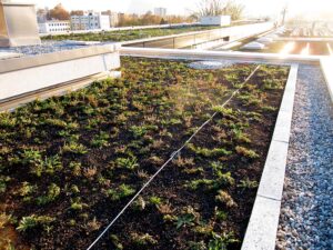 Die Nass-Ansaat auf Substratdächern ist ein bewährtes Verfahren, um einen möglichst schnellen Bewuchs zu erzielen.