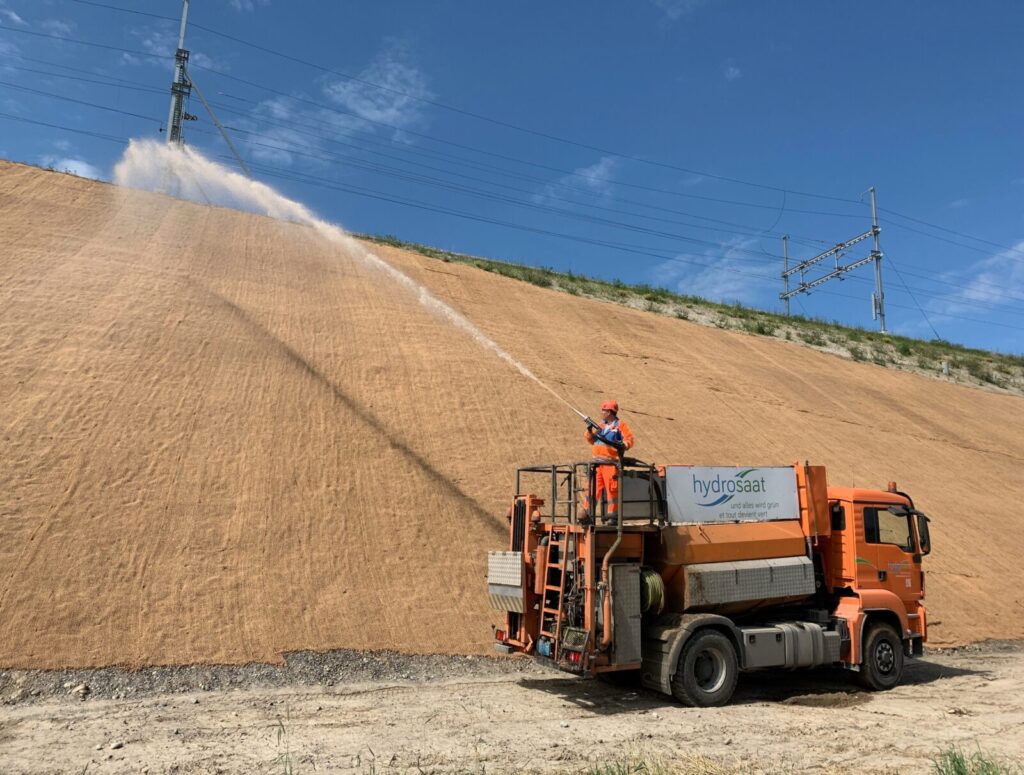 Ob Autobahnen, Bachufer, Lawinenverbauungen, Bahnanlagen, Forstobjekte oder Dächer – unsere Nassansaat bietet eine kostengünstige und effiziente Lösung für die Begrünung von Böschungen und Flächen, selbst in anspruchsvollen alpinen Lagen der Schweiz.