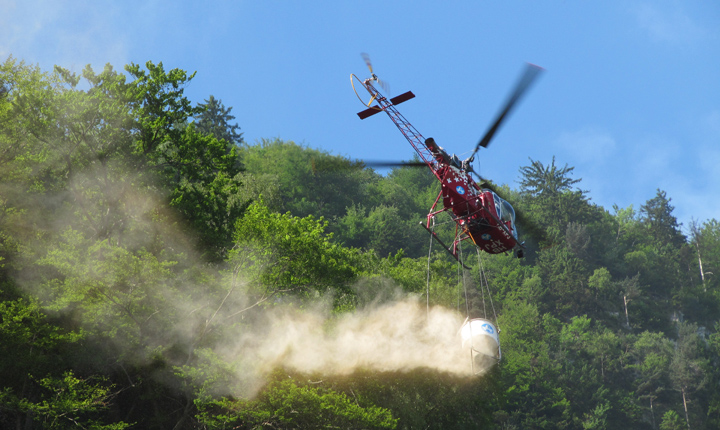 Ansaat in unwegsamem Gelände mit Helikopter und Spezialseeder
